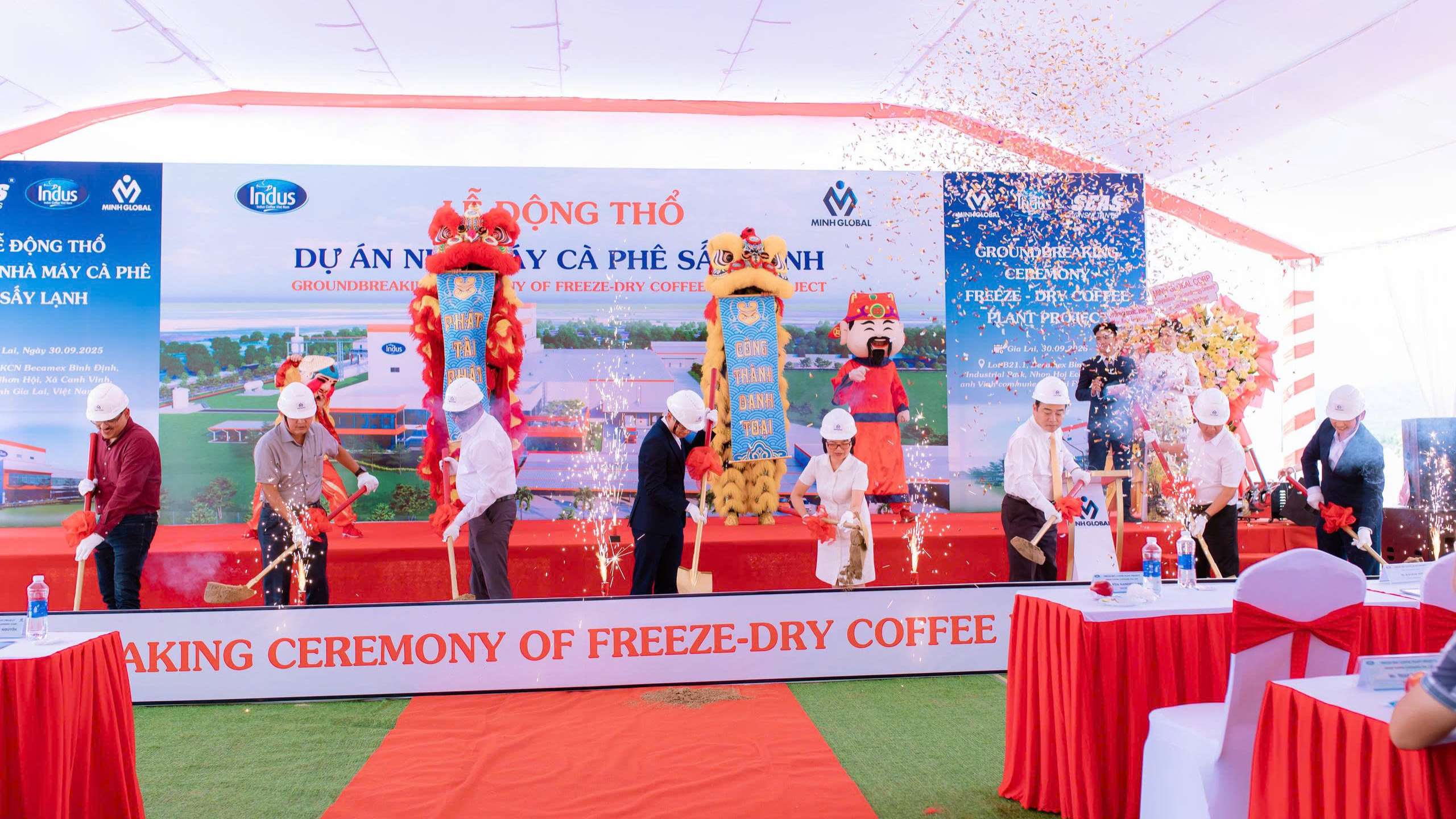 On the morning of September 30, 2025, at Becamex VSIP Binh Dinh Industrial Park (Canh Vinh Commune, Gia Lai Province), INDUS Coffee (Vietnam) Co., Ltd. solemnly held the Groundbreaking Ceremony of its Freeze-Dry Coffee Plant Project. The event was attended by SEAS Project Consultants Co., Ltd., along with representatives of partners, customers, and businesses in the coffee industry.